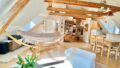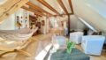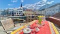 – eine sonnige Dachterrasse mit Blick über die Dächer der Stadt
